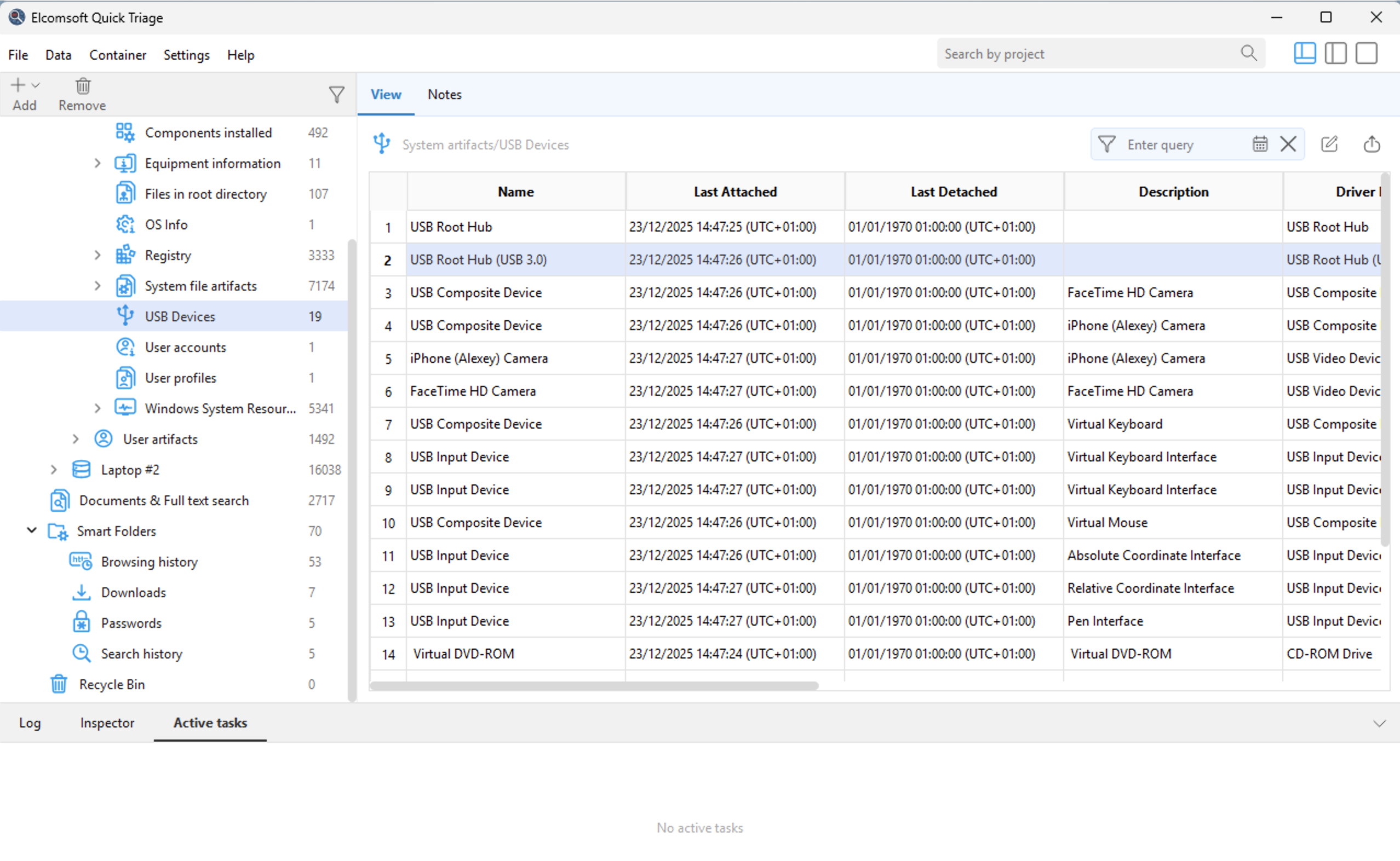 Finally, Elcomsoft Quick Triage pays special attention to credentials and protected data. The tool extracts Windows Vault entries, DPAPI-related data, cryptographic keys, certificates, and user and system credential stores. All artefacts are preserved with clear source attribution and context, allowing investigators to quickly focus on the most relevant evidence and make informed decisions without waiting for a full forensic examination.